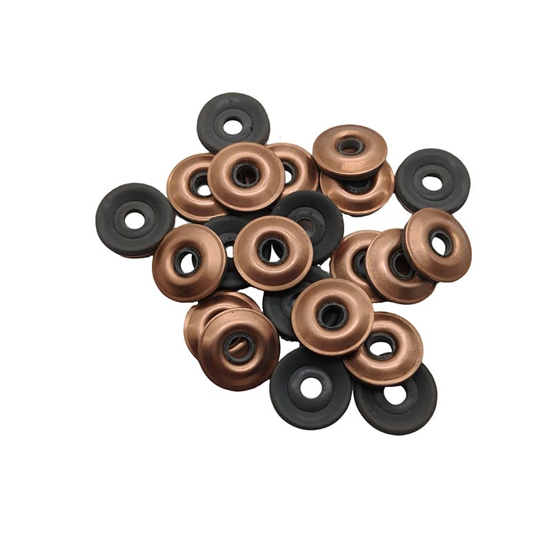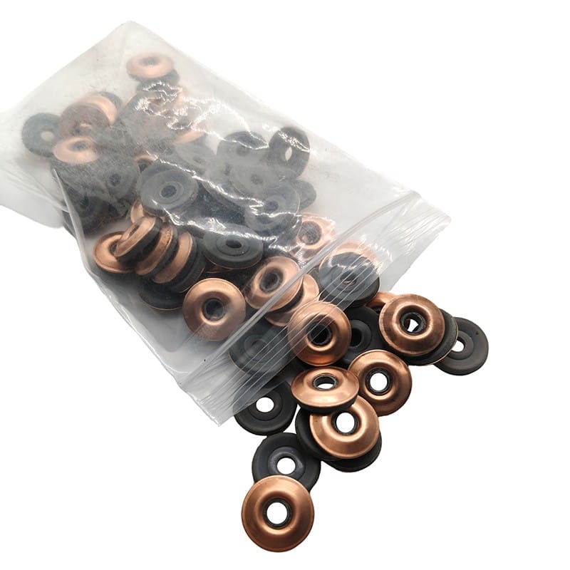 Réz ragasztós alátétjeink rézből és gumiból készülnek, belső átmérőjük 4 mm, külső átmérője pedig 15 mm vagy 19 mm. Általánosan használt tömítőelemként szolgálnak. Az olvadékragasztó bevonat felhordása előtt a felületet polírozzuk, hogy eltávolítsuk az oxidációs rétegeket. Termékeink szivárgásmentes tömítést biztosítanak, ellenállnak a magas hőmérsékletnek és a korróziónak, és megbízhatóan teljesítenek extrém környezetben. Ezenkívül a réz olvadékragasztó alátétek kiváló elektromos és hővezető képességgel rendelkeznek, és könnyen felszerelhetők. A réz olvadékragasztó alátéteket széles körben használják az autógyártásban, az energiatermelésben és az elektronikai berendezésekben. Általában tömítésre, csatlakoztatásra, valamint por- és nedvességvédelem biztosítására használják.