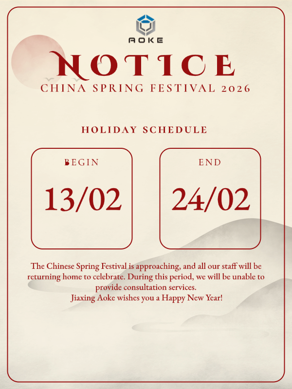 Közeledik a 2026-os Tavaszi Fesztivál. zárva leszünkfebruár 13-tól február 24-ig. Ebben az időszakban a gyártás, a szállítás és a személyes üzleti műveletek felfüggesztésre kerülnek. Sürgős ügyekben kérjük, forduljon az illetékes felelőshöz egyeztetés és megoldás céljából.