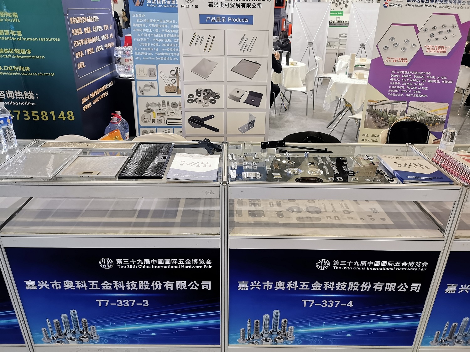 Jiaxing Aoke a kiállítás teljes ideje alatt jelen lesz. Precíziós gyártási folyamatokkal, kiváló korrózióállósággal és nagy szilárdsággal rendelkező, kiváló minőségű sajtolt alkatrészeket és kötőelemeket mutatunk be, amelyek széles körben alkalmazhatók, beleértve a bútorgyártást, az ipari összeszerelést és a gépészeti berendezéseket.